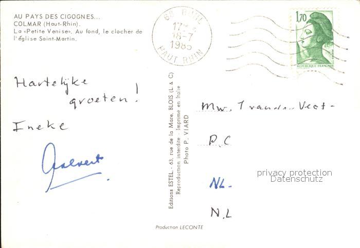 12463255 carte postale Colmar Haut Rhin Elsass La Petite Venise Au fond Le clocher de Eglise Saint Martin postalisch gelaufen Erhaltung siehe scans KatCode: 11170068268066