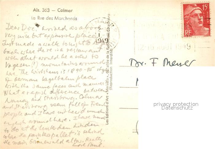 13365819 carte postale Colmar Haut Rhin Elsass La Rue des Marchands postalisch gelaufen Erhaltung siehe scans [WerneD78] KatCode: 11170068268066