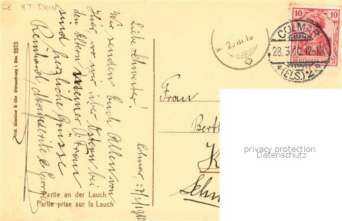 13365611 carte postale Colmar Haut Rhin Elsass Partie an der Lauch postalisch gelaufen Erhaltung siehe scans [FriedD77] KatCode: 11170068268066