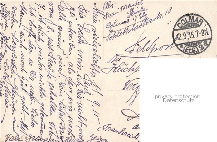 13482823 carte postale Colmar Haut Rhin Elsass Promenade mit Bartholdi Denkmal postalisch gelaufen Feldpost – Stempel Erhaltung siehe scans [WerneD78] KatCode: 11170068268066