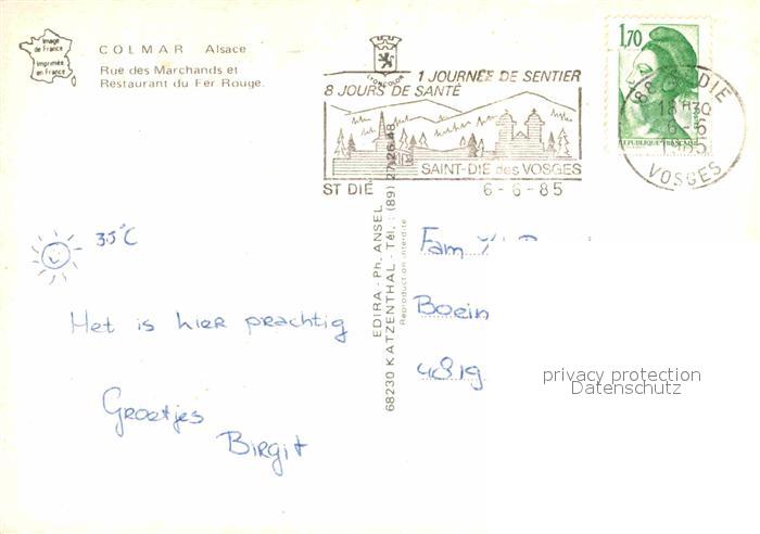 12698385 carte postale Colmar Haut Rhin Elsass Rue des Marchands et Restaurant du Fer Rouge postalisch gelaufen Erhaltung siehe scans [WerneD78] KatCode: 11170068268066