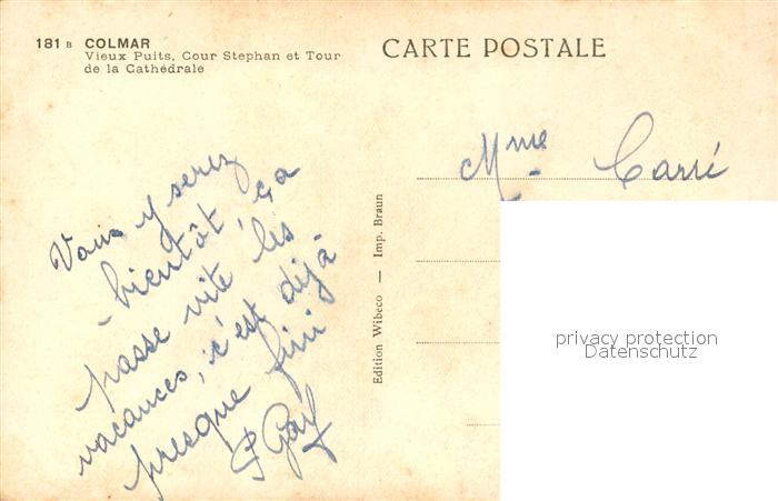 13612634 Colmar Haut Rhin Elsass Vieux Puits Cour Stephan et Tour de la Cathedrale postalisch nicht gelaufen Erhaltung siehe scans [WerneD78] Wern Katcode 11170068268066