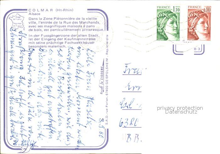 12500927 carte postale Colmar Haut Rhin Elsass Zone Pietonniere de la vieille ville Fussgaengerzone Altstadt Fachwerkhaeuser postalisch gelaufen Erhaltung siehe scans KatCode: 11170068268066