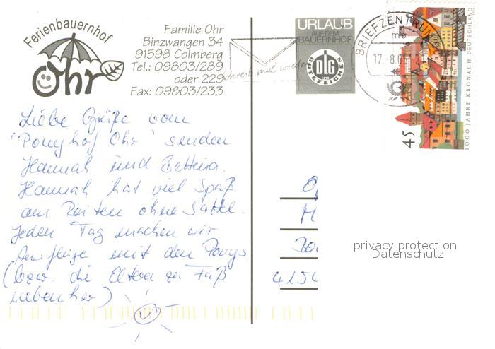 73652235 alte Postkarte Colmberg Ferienbauernhof Ohr Kinderspielplatz Brotzeit postalisch gelaufen Erhaltung siehe scans [WerneD78] KatCode: 11110009571130