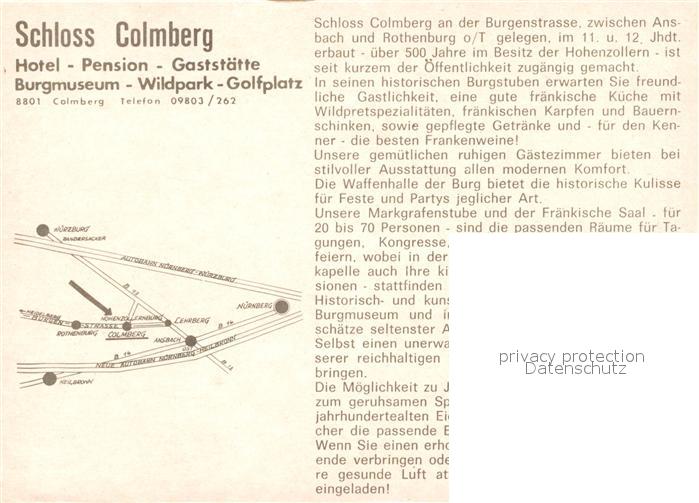 73182589 Colmberg Hohenzollernburg Schloss Colmberg Hotel Pension Gaststaette Wappen postalisch nicht gelaufen Werbekarte (keine Postkarte) Erhaltung siehe scans [FriedD77] KatCode: 11110009571130