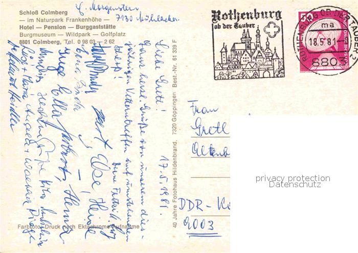 72774587 alte Postkarte Colmberg Schloss Naturpark Frankenhoehe postalisch gelaufen Erhaltung siehe scans [NatalD47] KatCode: 11110009571130