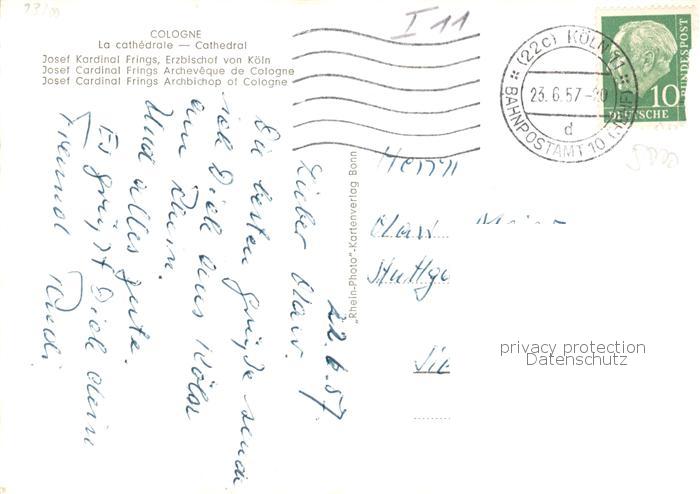 73868052 alte Postkarte Cologne Koeln Rhein Dom Josef Kardinal Frings Erzbischof von Koeln postalisch gelaufen Erhaltung siehe scans [WerneD78] KatCode: 11110005315000