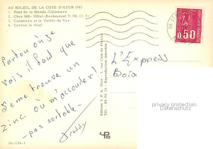 13583219 Colomars Pont de la Manda Chez Mo Hotel Vallee du Var Carros le Neuf postalisch gelaufen Erhaltung siehe scans [WerneD78] carte postale Wern Katcode 11170006206046