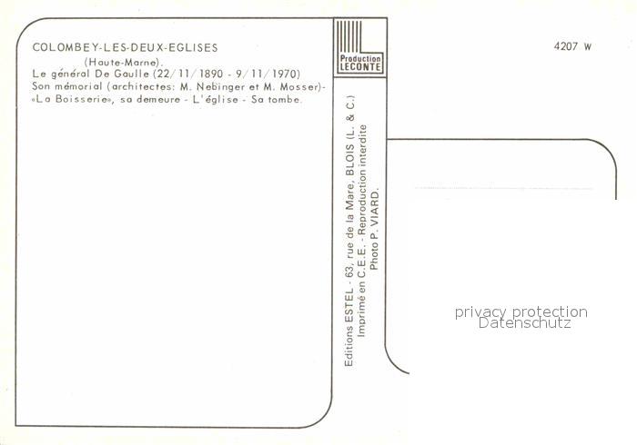 12862222 Colombey-les-Deux-Eglises General de Gaulle Kirche Kreuze postalisch nicht gelaufen Erhaltung siehe scans [LiesaD40] KatCode: 11170052152140