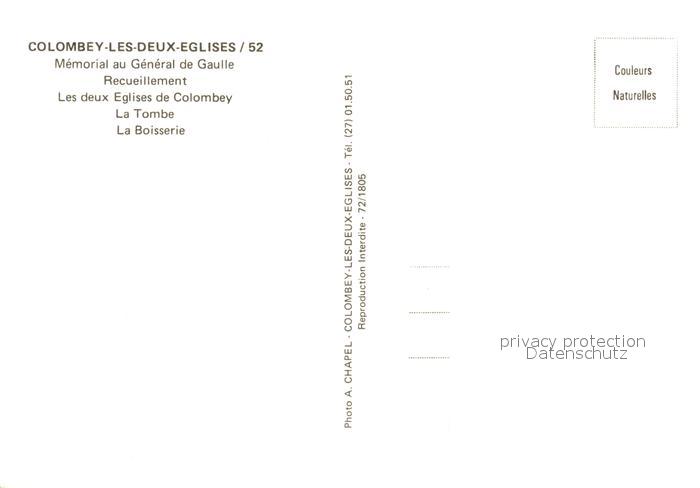 13061194 Colombey-les-Deux-Eglises Memorial au General de Gaulle Recueillement Eglise Tombe Boisserie postalisch nicht gelaufen Erhaltung siehe scans [FriedD77] KatCode: 11170052152140