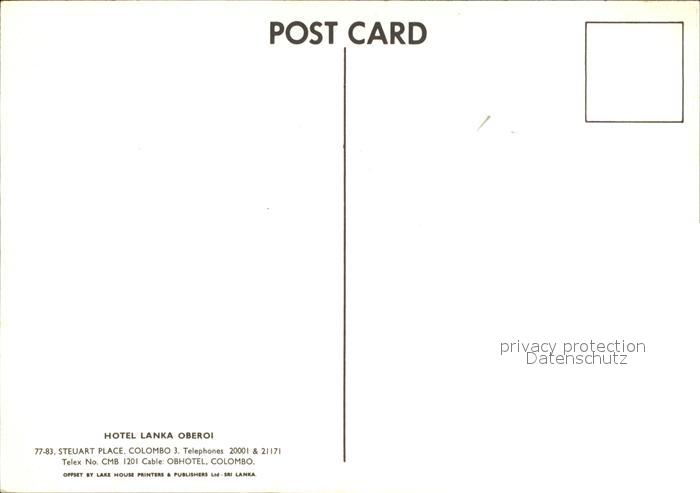 Colombo Bechar Hotel Lanka Oberoi postalisch nicht gelaufen Erhaltung siehe scans