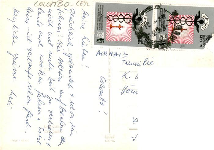 old postcard Colombo Ceylon Sri Lanka Strassenpartie postalisch gelaufen Erhaltung siehe scans [FriedD77]
