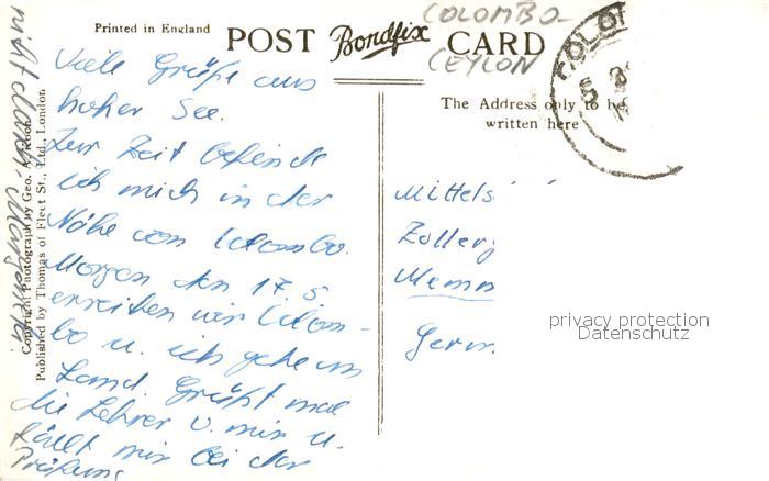 73803192 old postcard Colombo Ceylon Sri Lanka Temple Elephants Carrying the Sacred Tooth Relic at the Perahera Procession at Kandy postalisch gelaufen Erhaltung siehe scans [FriedD77] KatCode: 12160