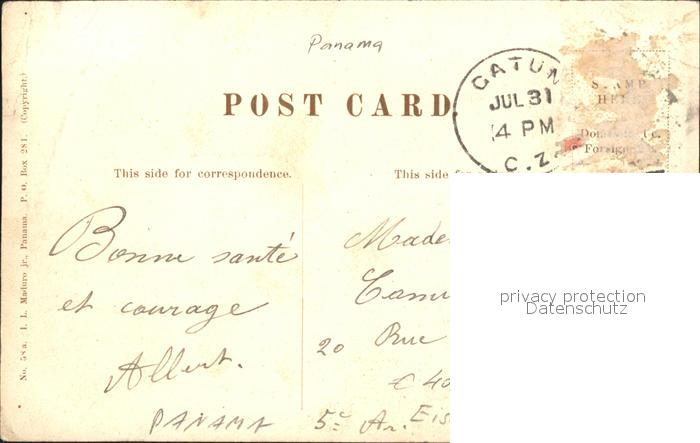 31735283 old postcard Colon Panama Shipping Port Train Dampflokomotive postalisch gelaufen KatCode: 15080