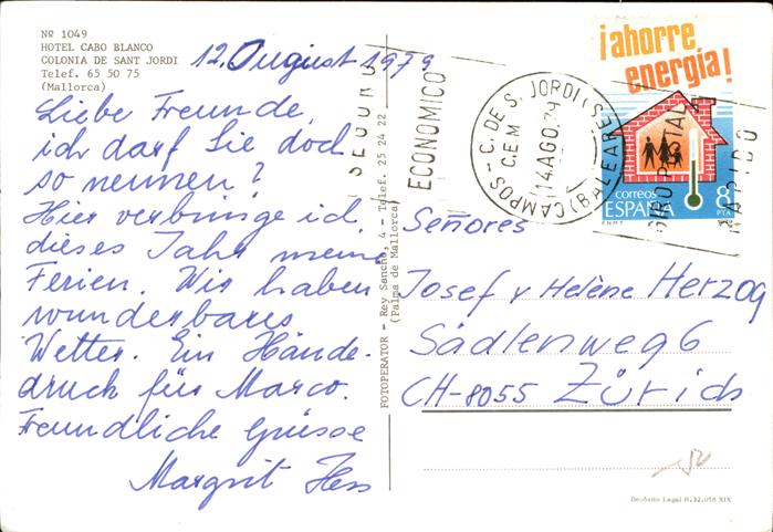 old postcard Colonia de Sant Jordi Hotel Cabo Blanco Strand postalisch gelaufen Erhaltung siehe scans