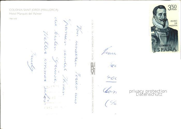 old postcard Colonia Sant Jordi Hotel Marquales del Palmer postalisch gelaufen Erhaltung siehe scans