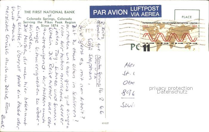 11693845 old postcard Colorado Springs First National Bank postalisch gelaufen Erhaltung siehe scans KatCode: 14140060000000