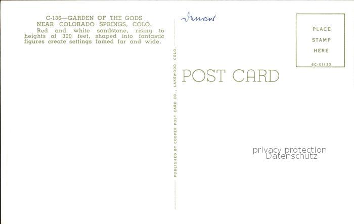 72486050 Colorado Springs Garden of the Gods postalisch nicht gelaufen Erhaltung siehe scans KatCode: 14140060000000