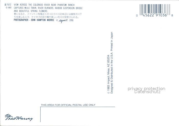 72405348 Colorado US-State View across the Colorado River near Phantom Ranch Kaibob Suspension Bridge postalisch nicht gelaufen Erhaltung siehe scans KatCode: 14140470000000
