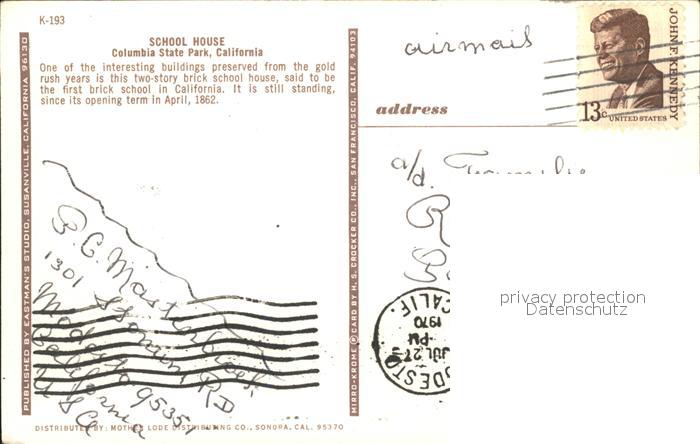 71955900 old postcard Columbia California School House postalisch gelaufen Erhaltung siehe scans KatCode: 14140050000000
