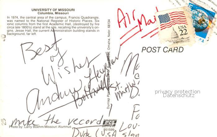 73131623 old postcard Columbia Missouri Universität postalisch gelaufen Erhaltung siehe scans [KathaD81] KatCode: 14140270000000