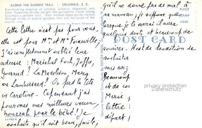 72956844 Columbia South Carolina Along the Garden Trail postalisch nicht gelaufen Erhaltung siehe scans [FriedD77] KatCode: 14140430000000