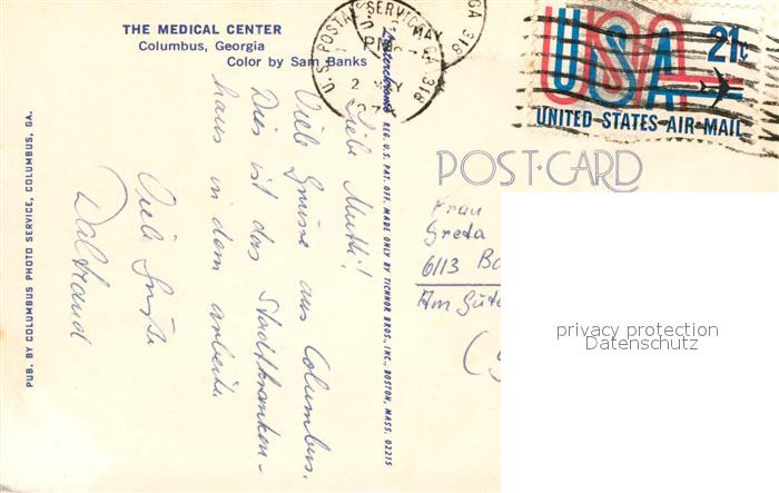 72948612 old postcard Columbus Georgia Medical Center postalisch gelaufen Erhaltung siehe scans [NatalD47] KatCode: 14140120000000