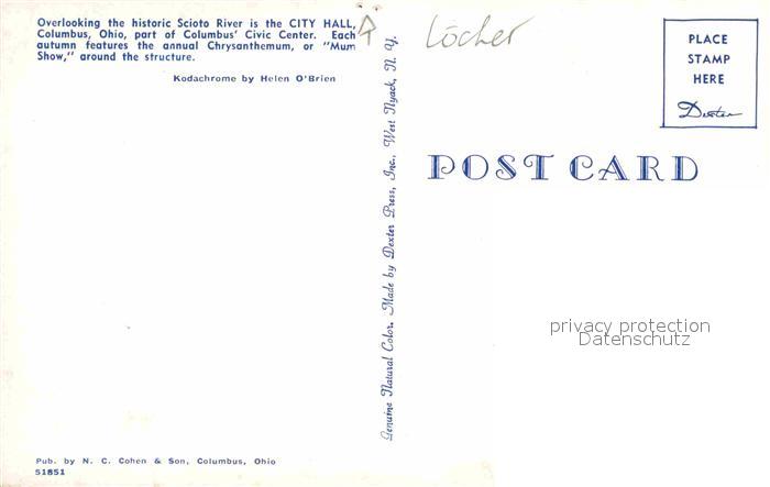 72705273 Columbus Ohio City Hall at Scioto River part of Columbus Civic Center postalisch nicht gelaufen Erhaltung siehe scans [FriedD77] KatCode: 14140370000000