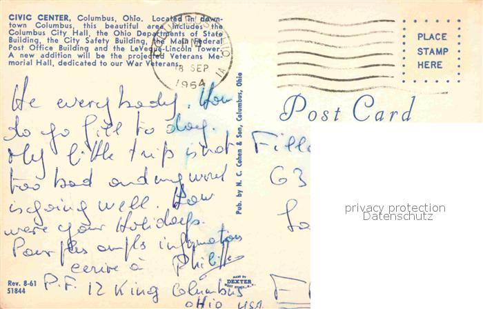 72748932 old postcard Columbus Ohio Civic Center postalisch gelaufen Erhaltung siehe scans [KathaD81] KatCode: 14140370000000