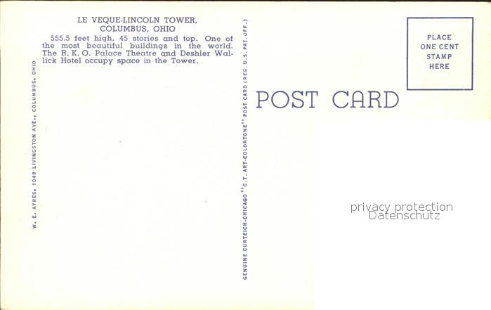 11688394 Columbus Ohio Veque Lincoln Tower at night postalisch nicht gelaufen Erhaltung siehe scans KatCode: 14140370000000
