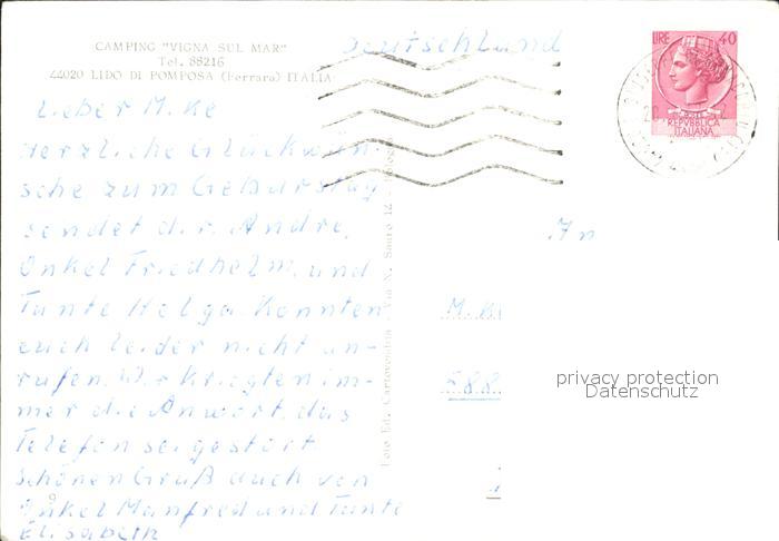 old postcard Comacchio Camping Vigna sul mar Lido di Pomposa postalisch gelaufen Erhaltung siehe scans