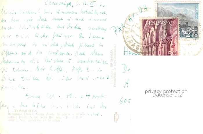 12731076 Comarruga Brisamar Hotel Vista desde la playa postalisch gelaufen Erhaltung siehe scans [WerneD78] old postcard Wern Katcode 11510