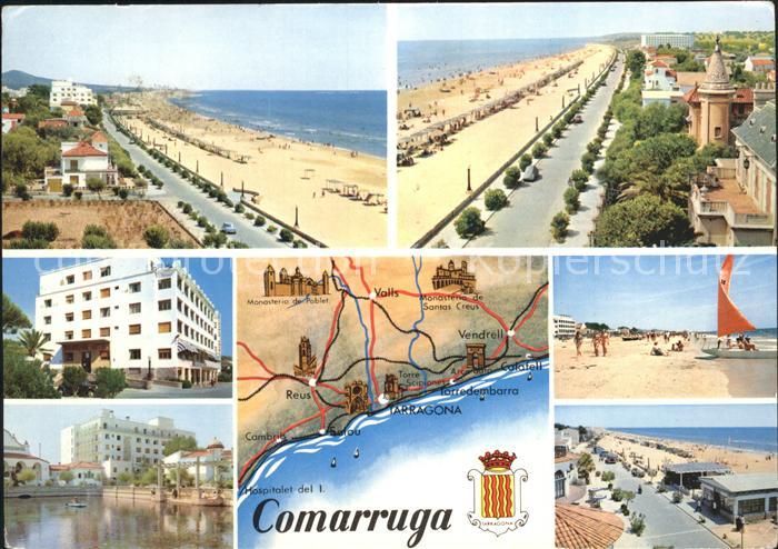 old postcard Comarruga Diversos aspectos de la Ciudad postalisch gelaufen Erhaltung siehe scans