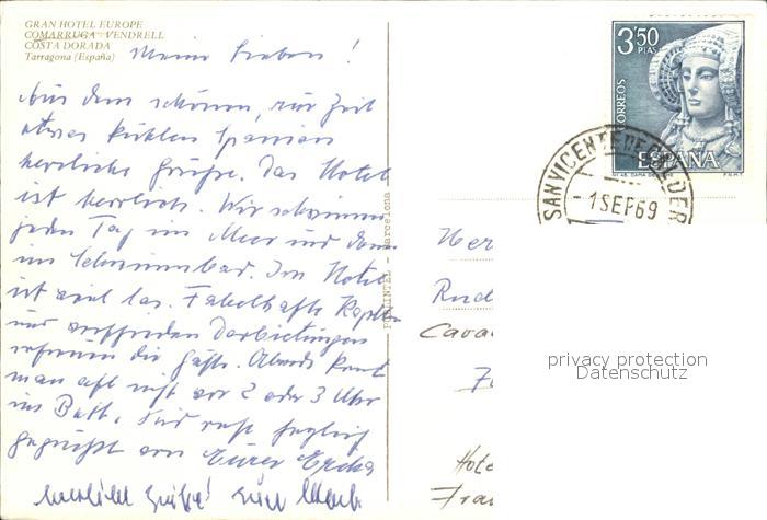 old postcard Comarruga Grand Hotel Europe postalisch gelaufen Erhaltung siehe scans