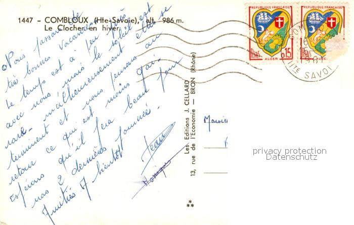 13560047 carte postale Combloux Clocher en Hiver postalisch gelaufen Erhaltung siehe scans [PaolaD17] KatCode: 11170074274083