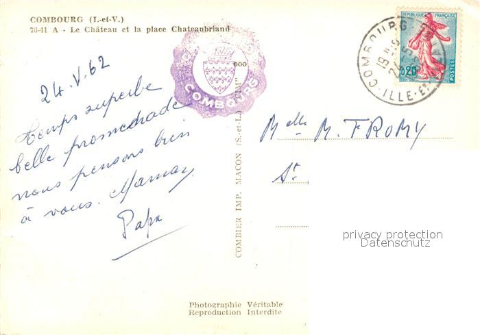 13579126 carte postale Combourg Chateau et Place Chateaubriand vue aérienne postalisch gelaufen Erhaltung siehe scans [FriedD77] KatCode: 11170035435085