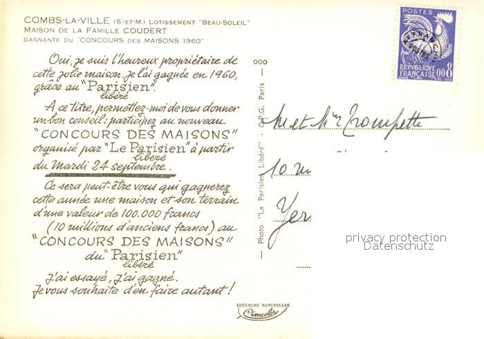 13590154 Combs-la-Ville Maison de la Famille Coudert postalisch gelaufen Erhaltung siehe scans [WerneD78] carte postale Wern Katcode 11170077277122