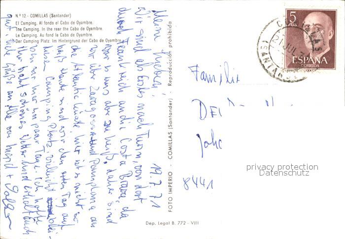 old postcard Comillas Camping Cabo Oyambre postalisch gelaufen Erhaltung siehe scans