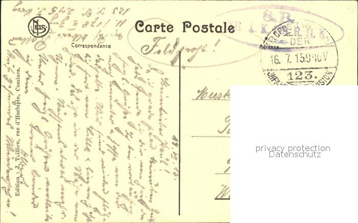 11916922 carte postale Comines Lille Gendarmerie Wache postalisch gelaufen Feldpost Erhaltung siehe scans KatCode: 11170059559152