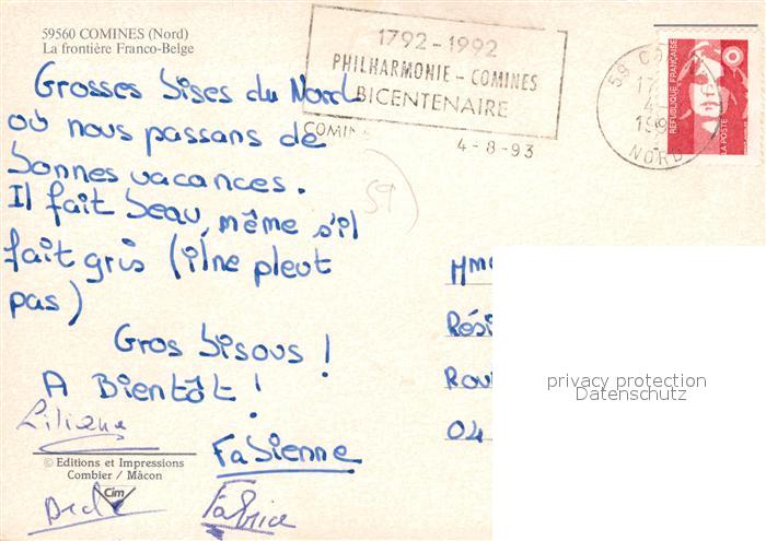 13109278 carte postale Comines Lille Grenze Franco Belge postalisch gelaufen Erhaltung siehe scans [KathaD81] KatCode: 11170059559152