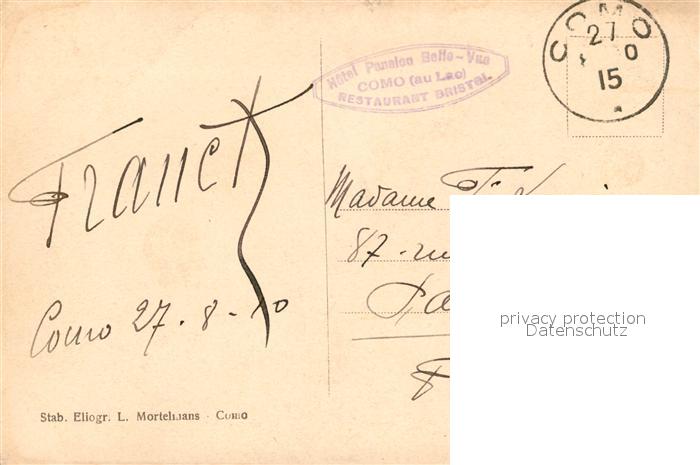 43532878 Como Lago di Como postalisch gelaufen Erhaltung siehe scans [PaolaD17] old postcard Paol Katcode 11240