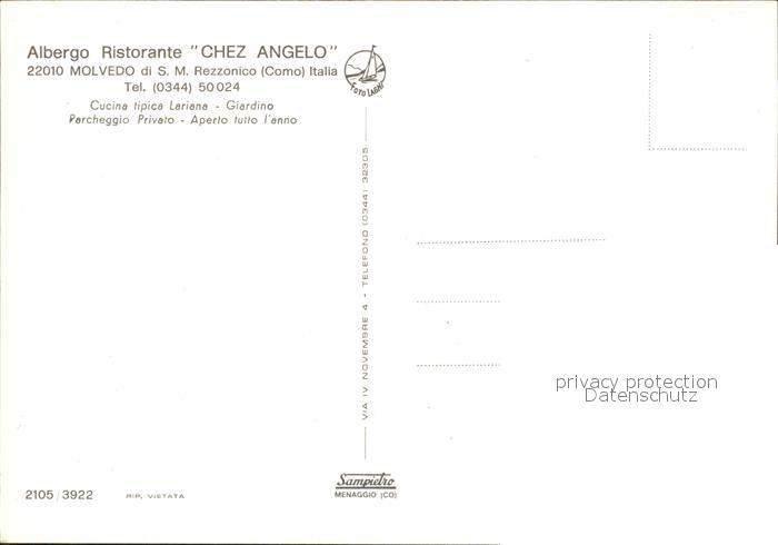 Como Lago di Como Albergo Restaurant Chez Angelol Strand Molvedo postalisch nicht gelaufen Erhaltung siehe scans