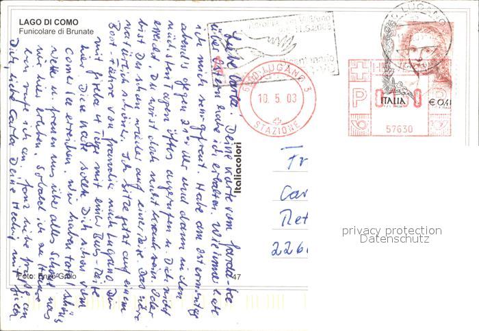 old postcard Como Lago di Como Funicolare di Brunate postalisch gelaufen Erhaltung siehe scans