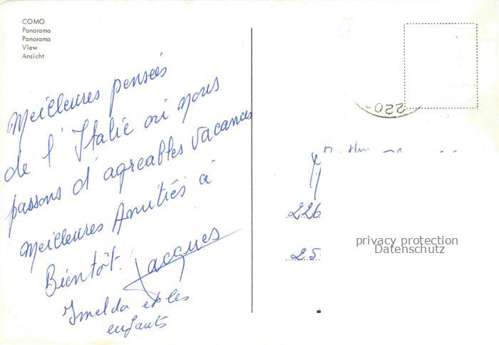 74085882 old postcard COMO Lago di Como Lombardia IT Fliegeraufnahme postalisch gelaufen Erhaltung siehe scans [WerneD78] KatCode: 11240