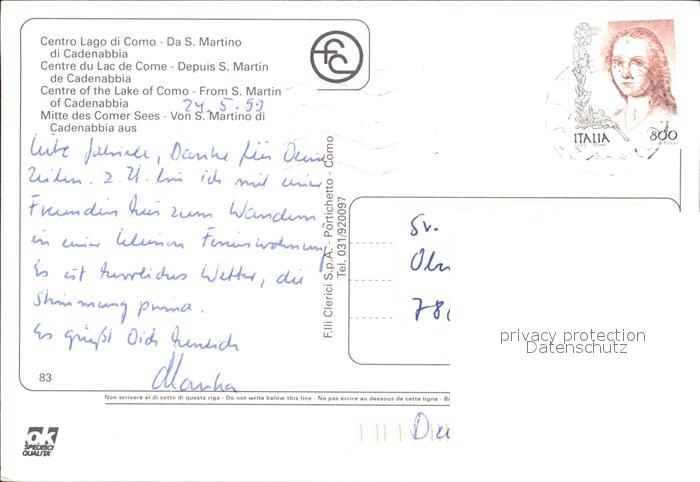 old postcard Como Lago di Como San Martino di Cadenabbia postalisch gelaufen Erhaltung siehe scans