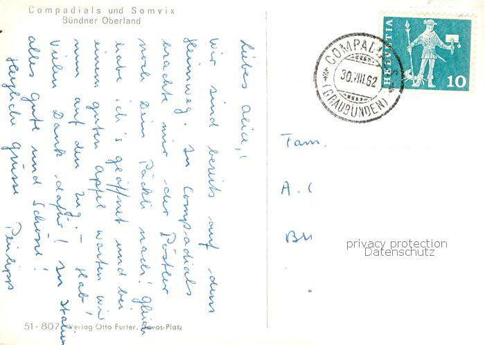 13853490 alte Postkarte Compadials Disentis GR und Somvix Buendner Oberland postalisch gelaufen Erhaltung siehe scans [FriedD77] KatCode: 11470100355436