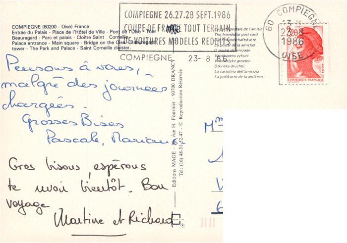 13948083 Compiegne 60 Oise Palais Place de l’Hôtel de Ville Pont de l’Oise Tour Beauregard Parc Cloître postalisch gelaufen Erhaltung siehe scans [FriedD77] carte postale Frie Katcode 11170060360159