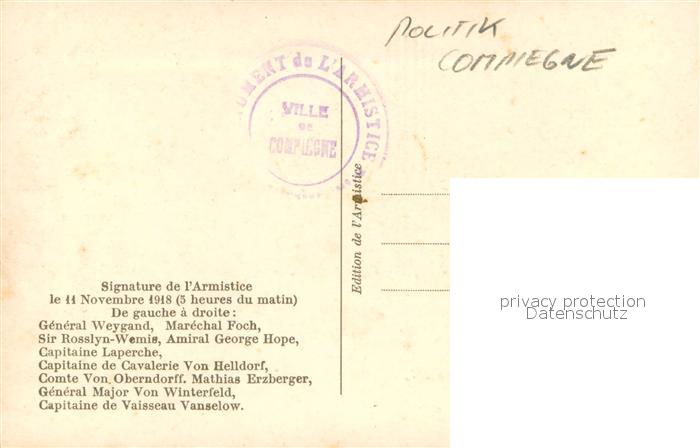 13747956 Compiegne 60 Signature de l´Armistice postalisch nicht gelaufen Erhaltung siehe scans [IrynaD87] Iryn Katcode 11170060360159