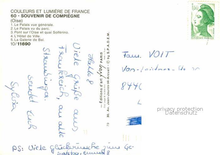 12785170 carte postale Compiegne Oise Palais Pont sur l’Oise Quai Solferino Hotel de Ville Galerie de Bal postalisch gelaufen Erhaltung siehe scans [FriedD77] KatCode: 11170060360159