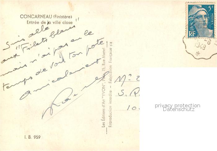13581964 Concarneau Finistere Entrée de la ville close postalisch gelaufen Erhaltung siehe scans [FriedD77] carte postale Frie Katcode 11170029429039
